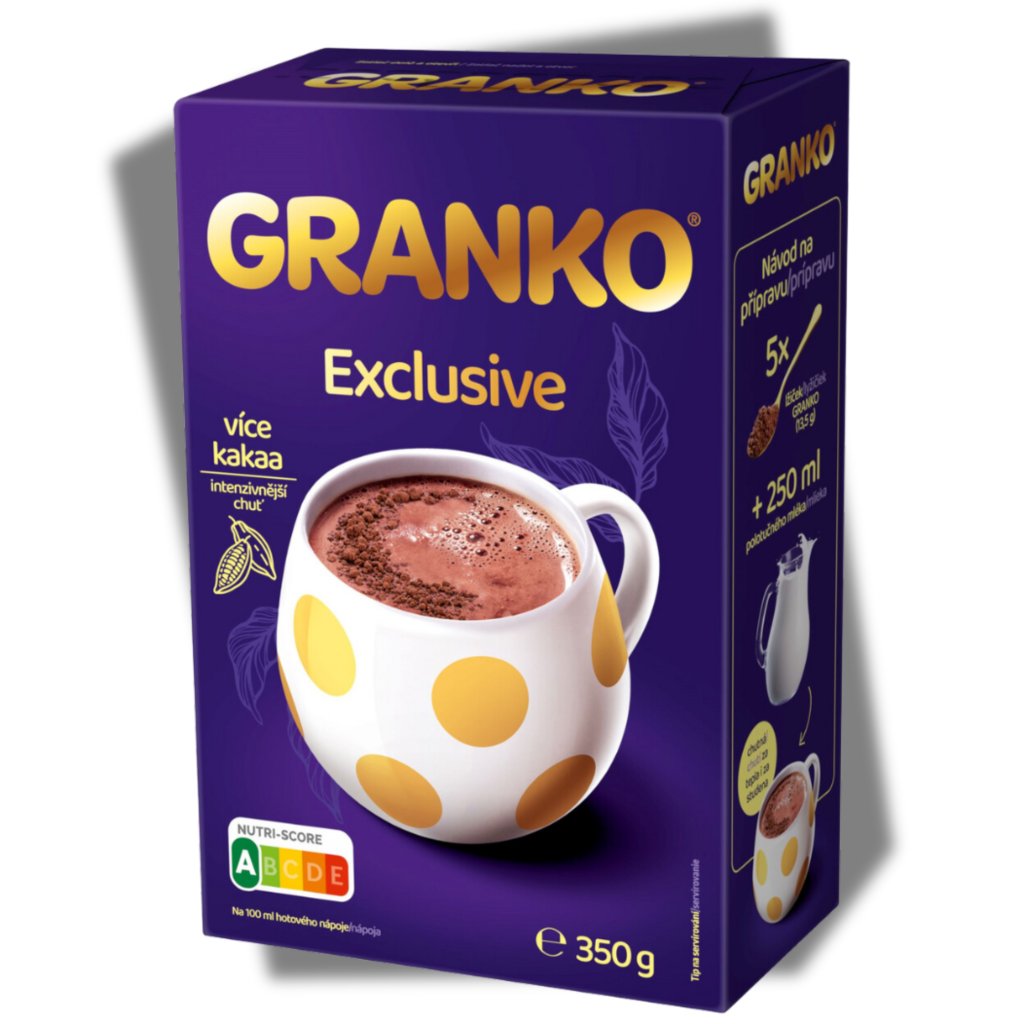 - Návod na přípravu: Chutná za tepla i za studena. 3 lžičky (8 g) GRANKO + 250 ml mléka.