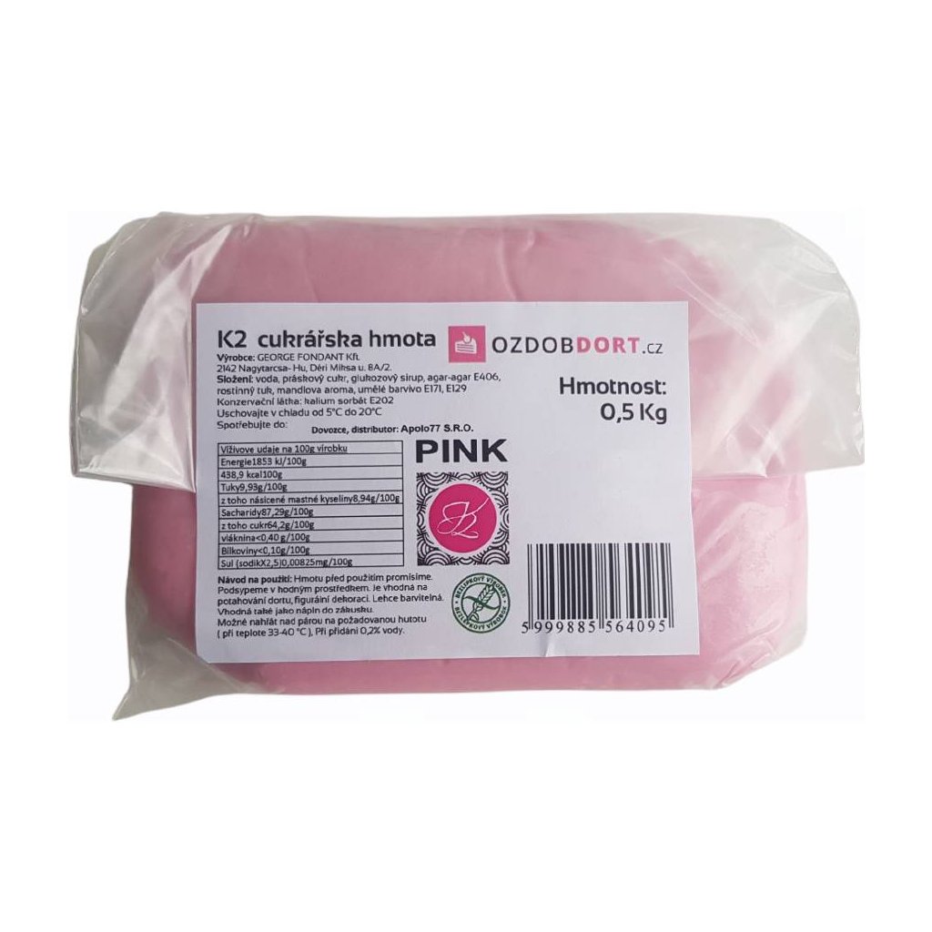 Potahovací hmota K2 na dorty 0,5kg růžová - K2