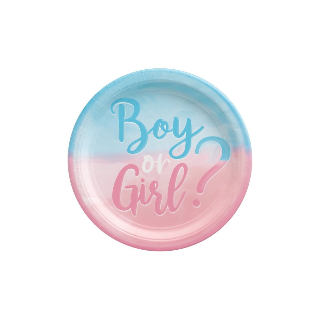 Papírové talíře na oslavu odhalení pohlaví dítěte. Rozměr: 23 cm. Balení: 8 ks.Doplňkové parametry