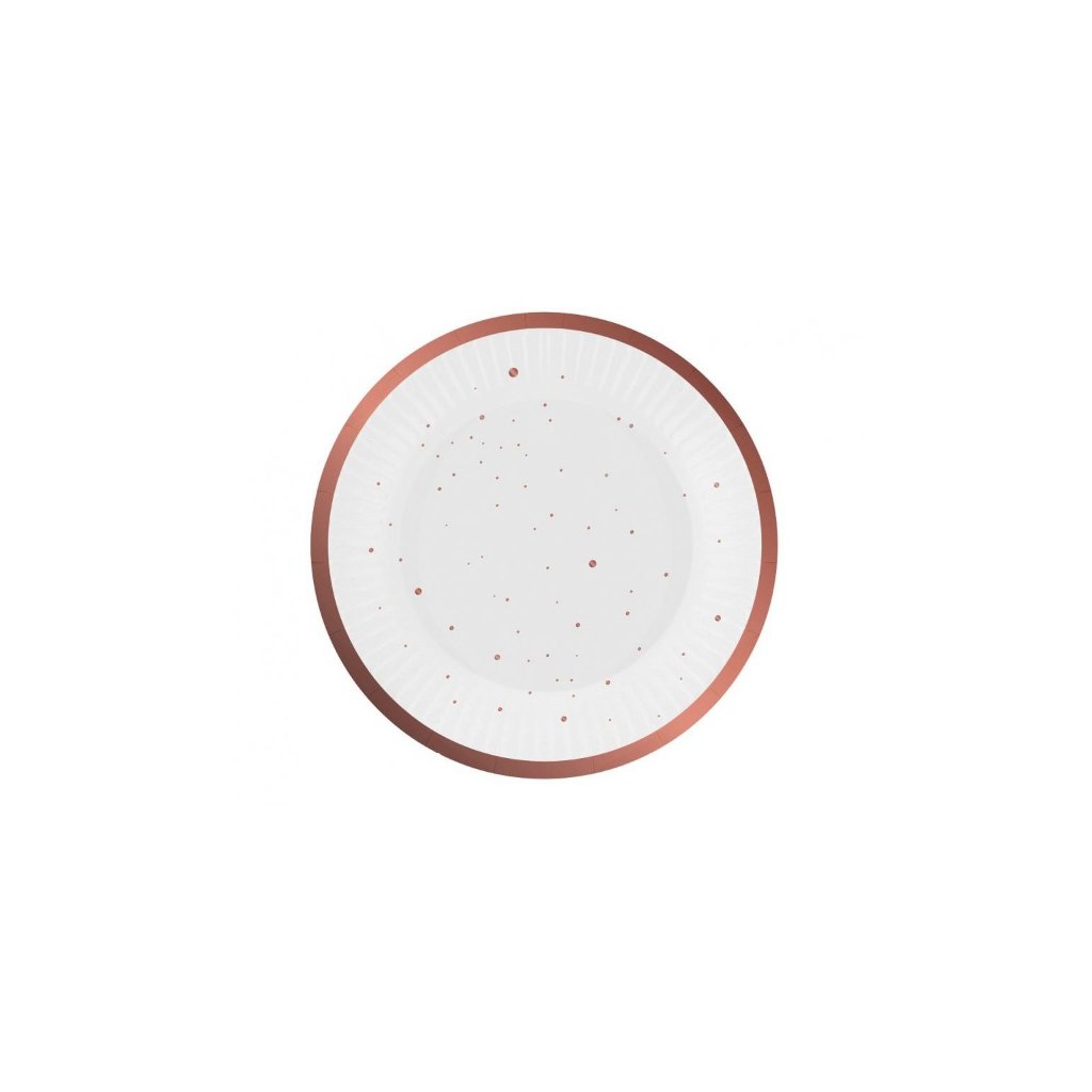 Papírové talíře - bílé s rosegold tečkami 18 cm - 6 ks /BP