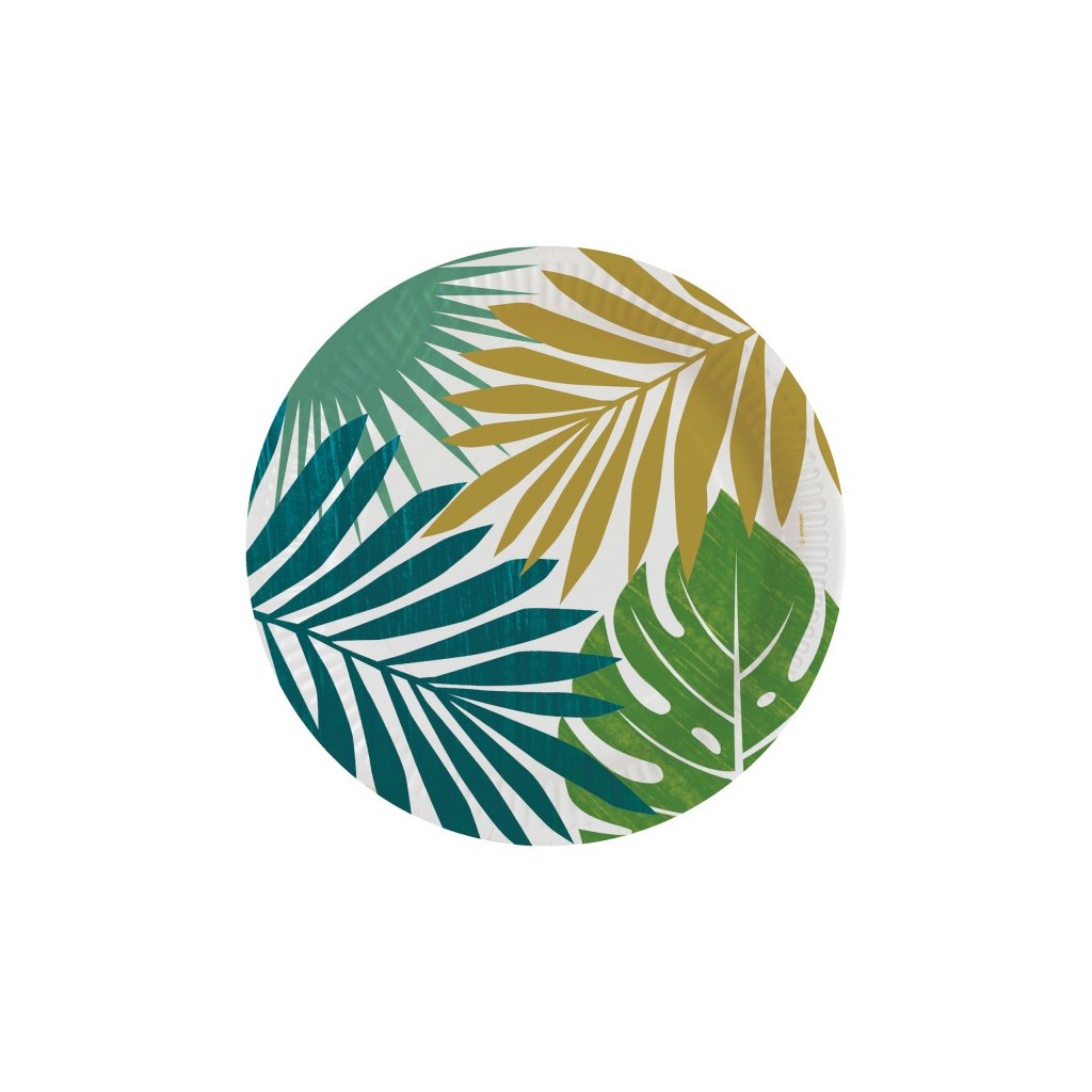 Papírové talíře s motivem tropických listů. Ideálně se hodí jako praktická dekorace tematické party. Rozměry: 23 cm. Balení 8 ks.Doplňkové parametry