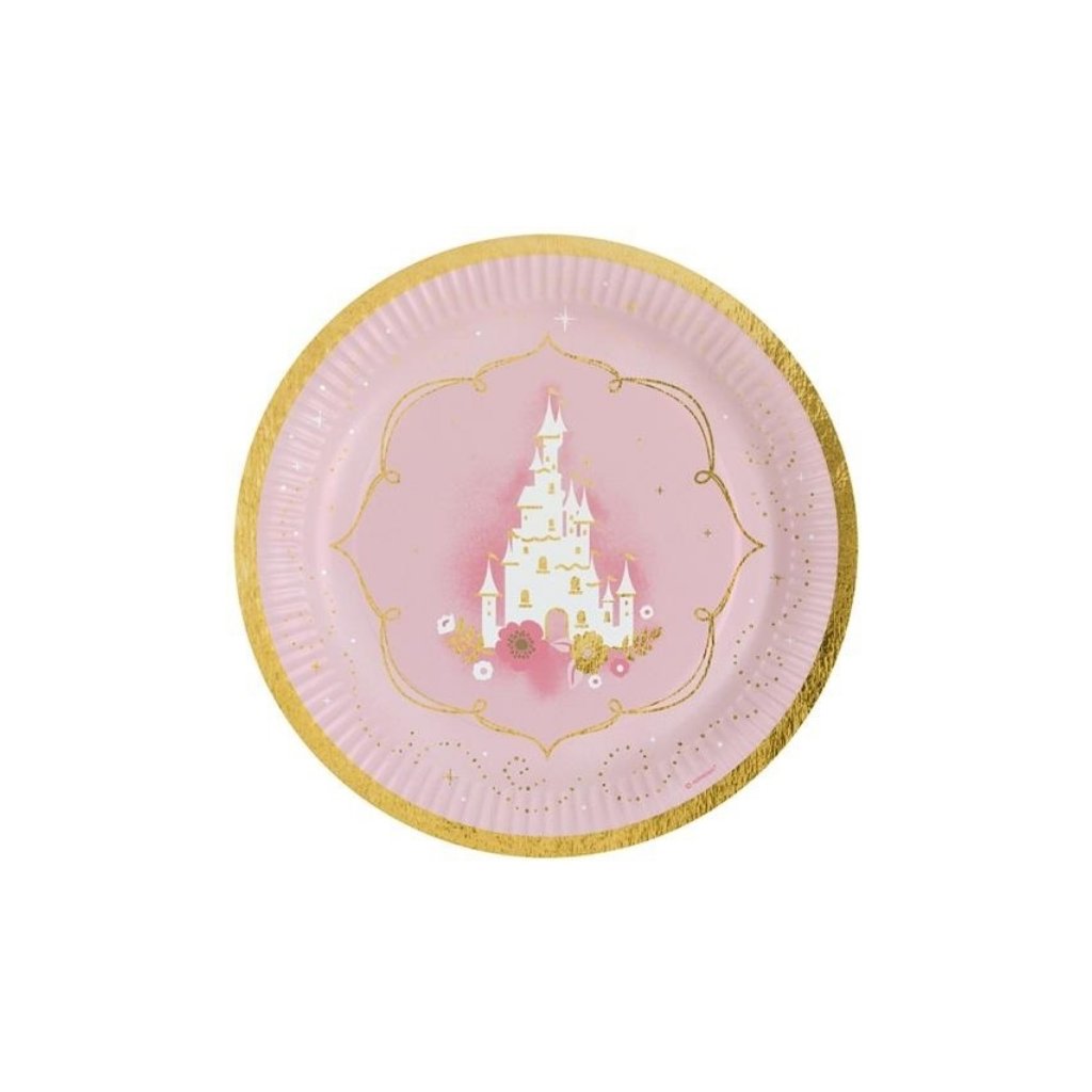 Papírové talíře na tématickou party Na den princeznou. Vhodné do kombinace s ostatními produkty této party jako ubrousky, kelímky a další. Rozměr: 23 cm. Balení: 8 ks.Doplňkové parametry
