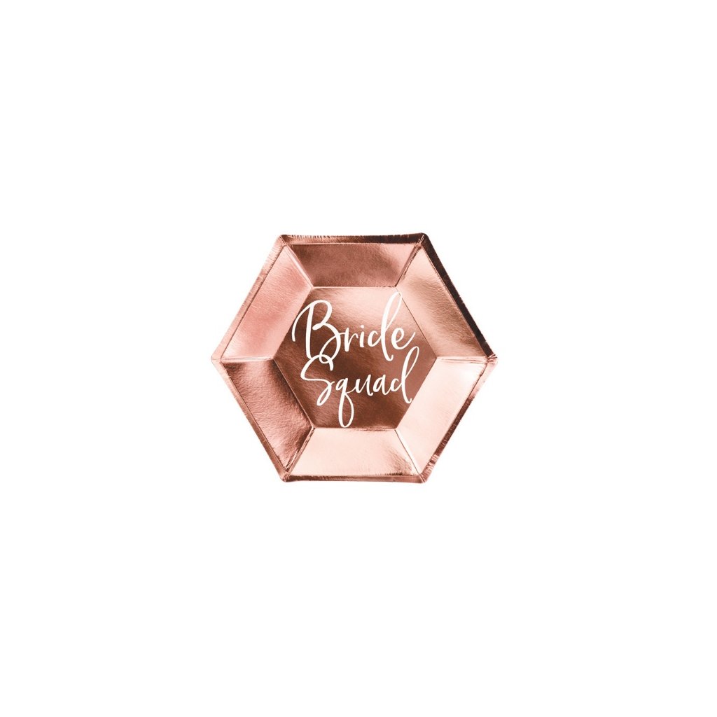 Papírové talíře metalické rose gold - Bride Squad 23 cm - 6 ks /BP