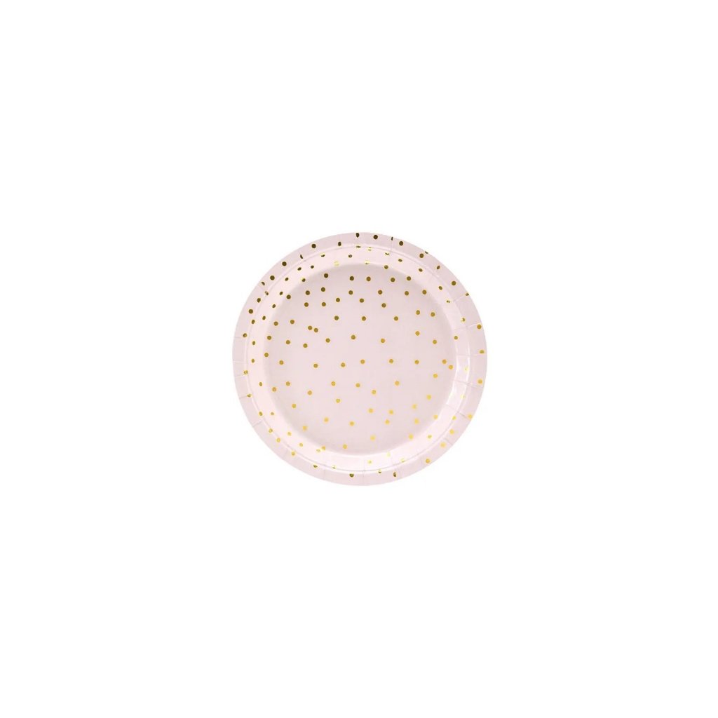 Papírové talíře růžové se zlatými puntíky 18 cm - 6 ks /BP