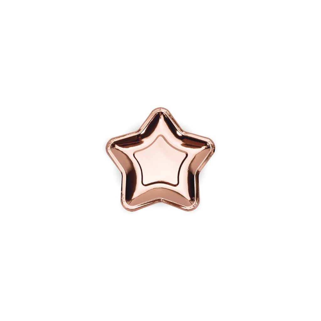 Papírové talířky ve tvaru hvězdy - metalické rose gold 18 cm /BP
