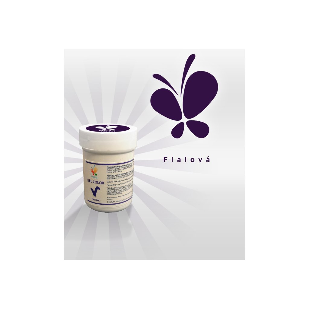 Potravinářská fialová barva ve formě gelu. Různé barvy je možné smíchat a vytvořit tak nové odstíny.