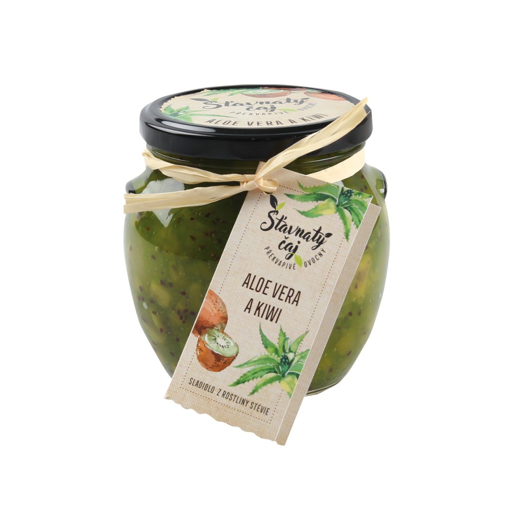 - Aloe vera 43%, kiwi 39%, cukr, kyseliny: kyselina jablečná, kyselina citrónová, konzervant: sorban draselný, barvivo: chlorofyl, betakaroten, antioxidant: askorban sodný, disičitan sodný, sladidlo: steviol-glykosid, zahušťovadla: xanthan, guma guar, alginát sodný, aroma.