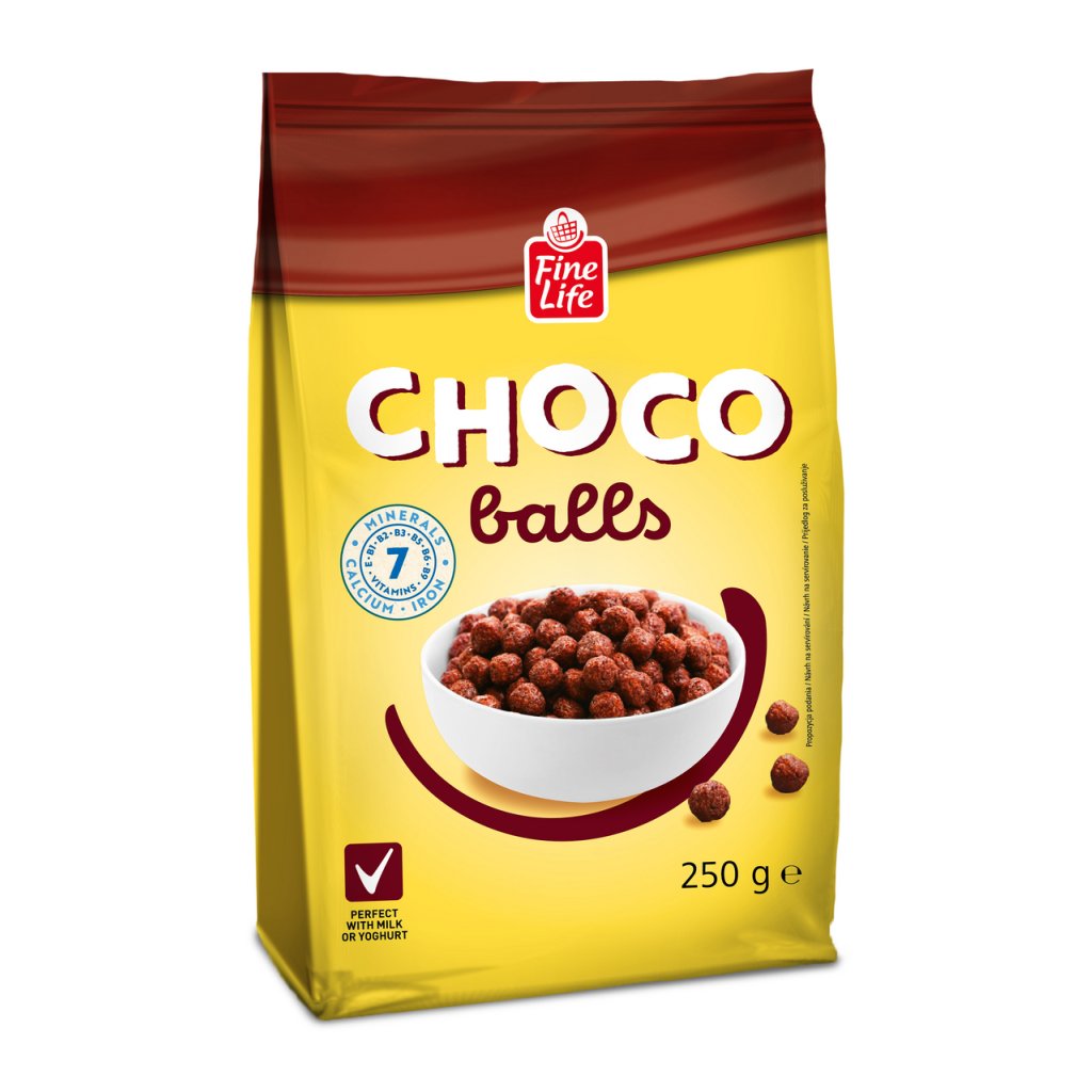 Nakupovat potraviny, drogerii a další potřeby pro domácnost online se vyplatí. Náš online supermarket Terunka.cz, toho má v kategorii: mnohem více. Prohlédněte si celou naší nabídku a ušetřete svůj čas i peníze.Fine Life Choco Balls 250 g za skvělou cenu, máme skladem.