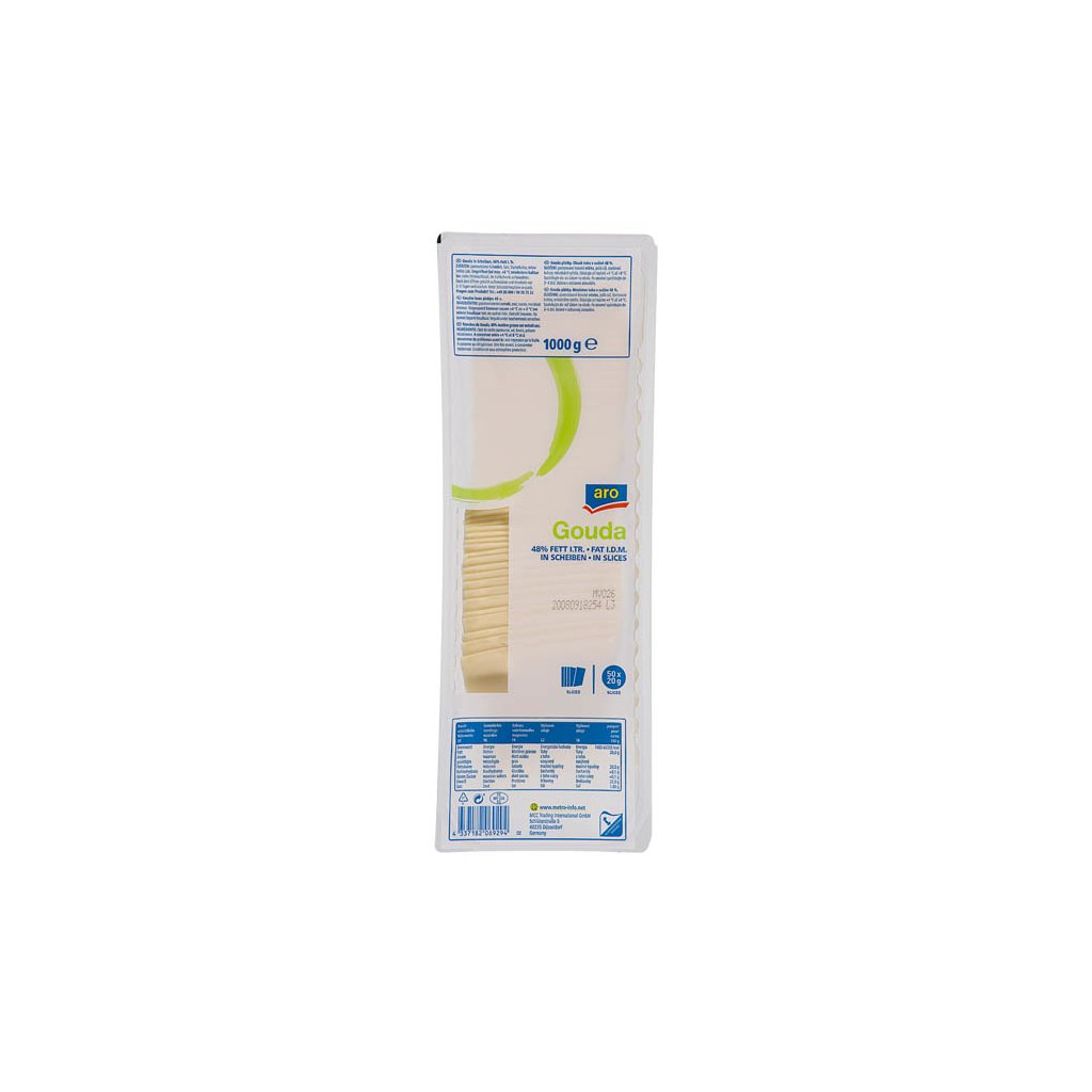- Gouda plátky. Obsah tuku v sušině 48 %. Baleno v ochranné atmosféře.