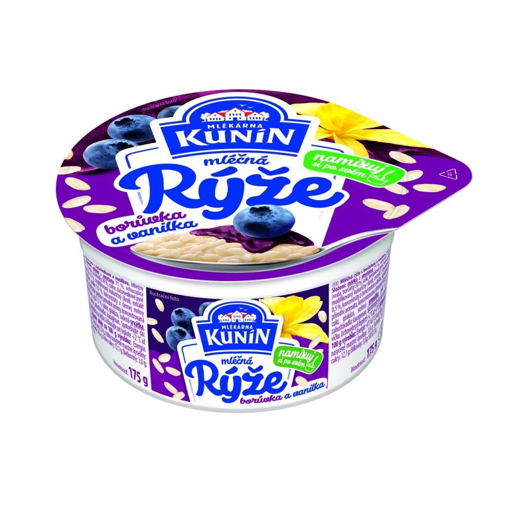 SLOŽENÍ produktu MLÉKÁRNA KUNÍN Mléčná rýže mix III. chlaz. 12 x 175 g:
