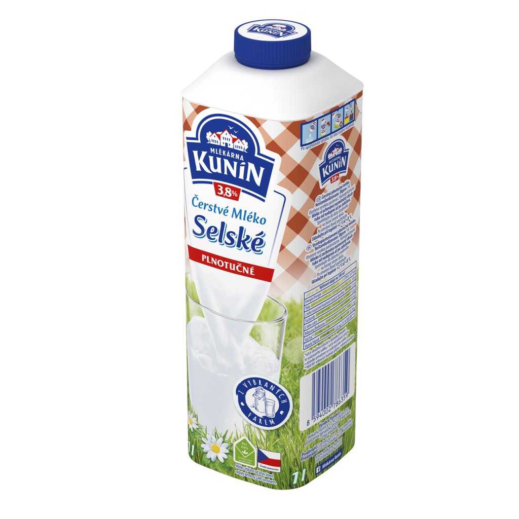 MLÉKÁRNA KUNÍN Mléko selské 3,8 % čerstvé chlaz. 1 l
