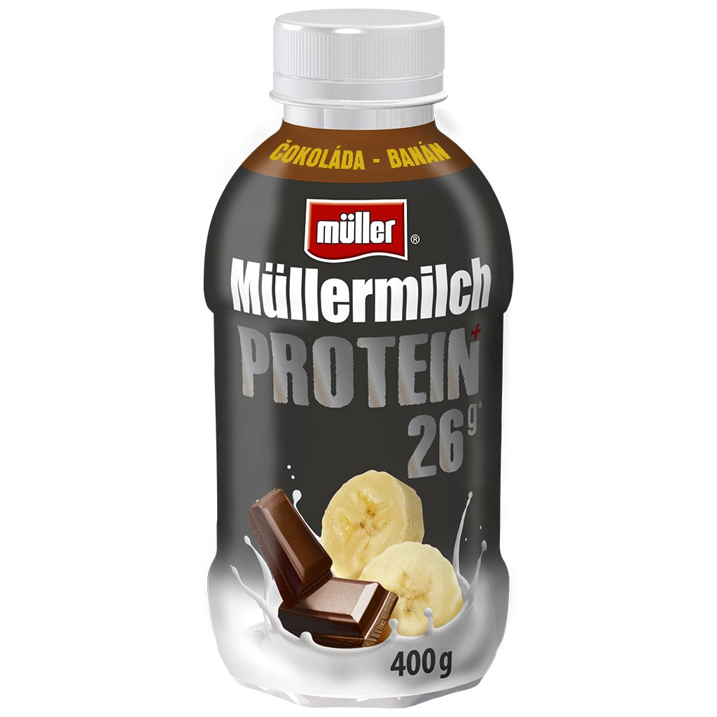 - Mléčný nápoj s vysokým obsahem bílkovin, s čokoládovo-banánovou příchutí.