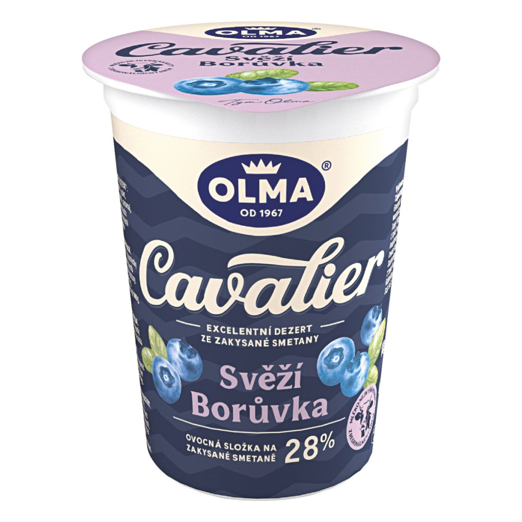 - CAVALIER SLANÝ KARAMEL: smetana, ochucující složka 28 % (voda, cukr, karamelový sirup 12,5 % (invertní cukr, sušené mléko, karamelizovaný cukr, máslo, kokosový tuk, emulgátor řepkový lecitin), zahušťovadla: modifikovaná škrob a karubin, karamelizovaný cukr 0,5 %, sůl 0,1 %, regulátor kyselosti kyselina mléčná, aroma), modifikovaná škrob, mléčné kultury.Bez lepku.CAVALIER CITRONOVÝ CHEESECAKE: smetana, ochucující složka 28 % (cukr, voda, citronová šťáva 5,6 %, citron 5 %, sušenky 5 % (pšeničná mouka, cukr, pšeničný a bramborový škrob, vaječný bílek, sůl, vanilin), zahušťovadla: modifikovaná škrob a agar, koncentráty z citronu a světlice barvířské, regulátor kyselosti kyselina mléčná, aroma), modifikovaná škrob, mléčné kultury.CAVALIER BORŮVKA: smetana, ochucující složka 28 % (borůvky 45 %, cukr, voda, zahušťovadla modifikovaný škrob a pektin, aroma), modifikovaný škrob, mléčné kultury.Bez lepku.CAVALIER ČOKOLÁDOVA POMERANČ: smetana, ochucující složka 28 % (cukr, pomerančová šťáva 29 %, čokoláda v prášku 15,6 % (cukr, kakao 32 %), voda, zahušťovadla modifikovaný škrob a karubin, aroma), modifikovaný škrob, mléčné kultury.Bez lepku.