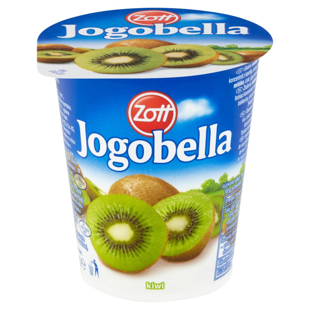 - Mléko, 18 % ovocná složka (50 % kiwi, cukr, barvící koncentrát z karotky, aroma, barvivo: E 141), mléčné bílkoviny, zahuštěné mléko, cukr, jogurtová kultura.