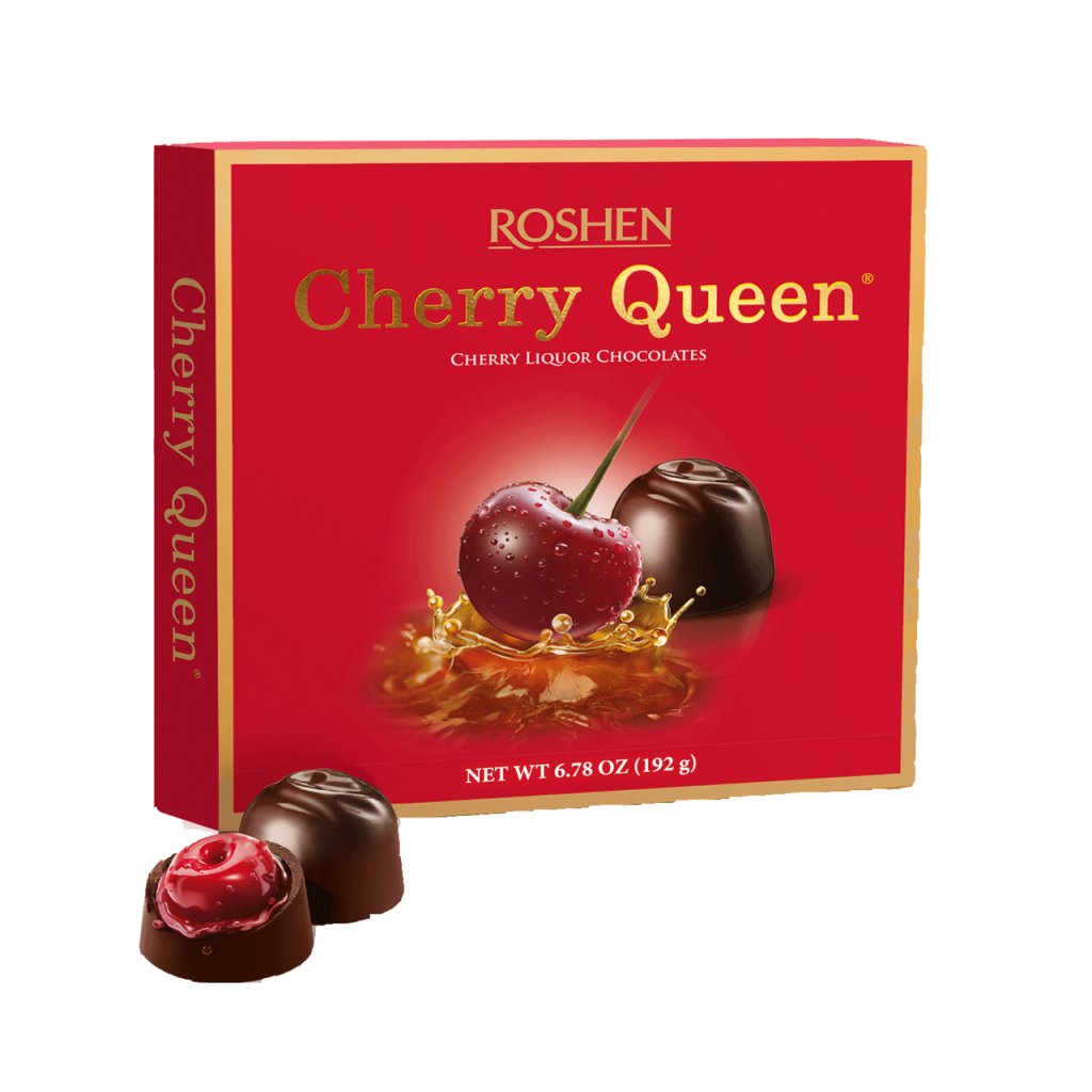 - CHERRY QUEEN čokoládové bonbóny s višněmi v alkoholu.