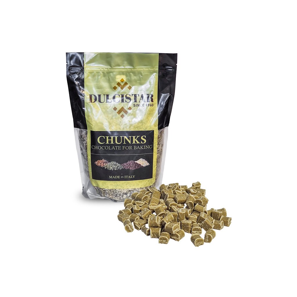Čokoládové Chunks kostky pistáciové i na pečení, Dulcistar 2 kg/sáček
