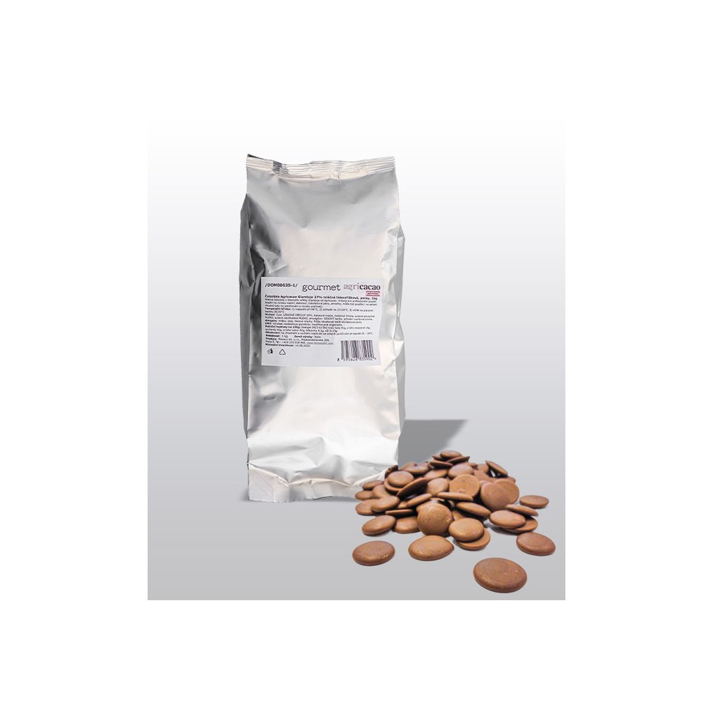 Čokoláda Agricacao Gianduja 27% mléčná lískooříšková, pecky 1 kg/sáček