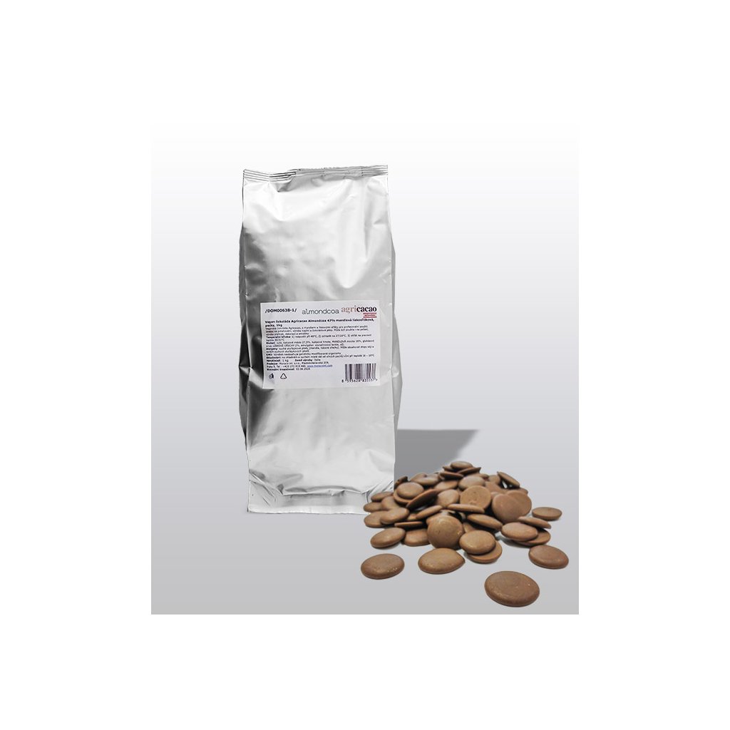 Vegan čokoláda Agricacao Almondcoa 47% mandlovo-oříšková, pecky 1 kg/sáček