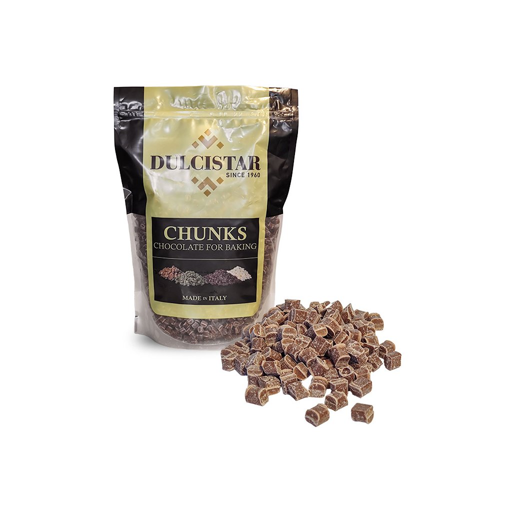 Čokoládové Chunks kostky mléčné 27 % i na pečení, Dulcistar 2 kg/sáček