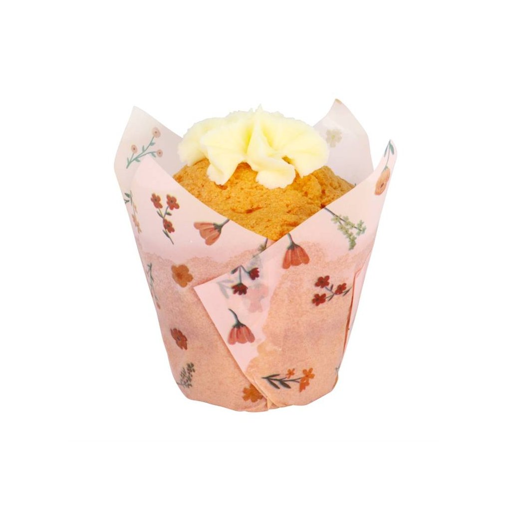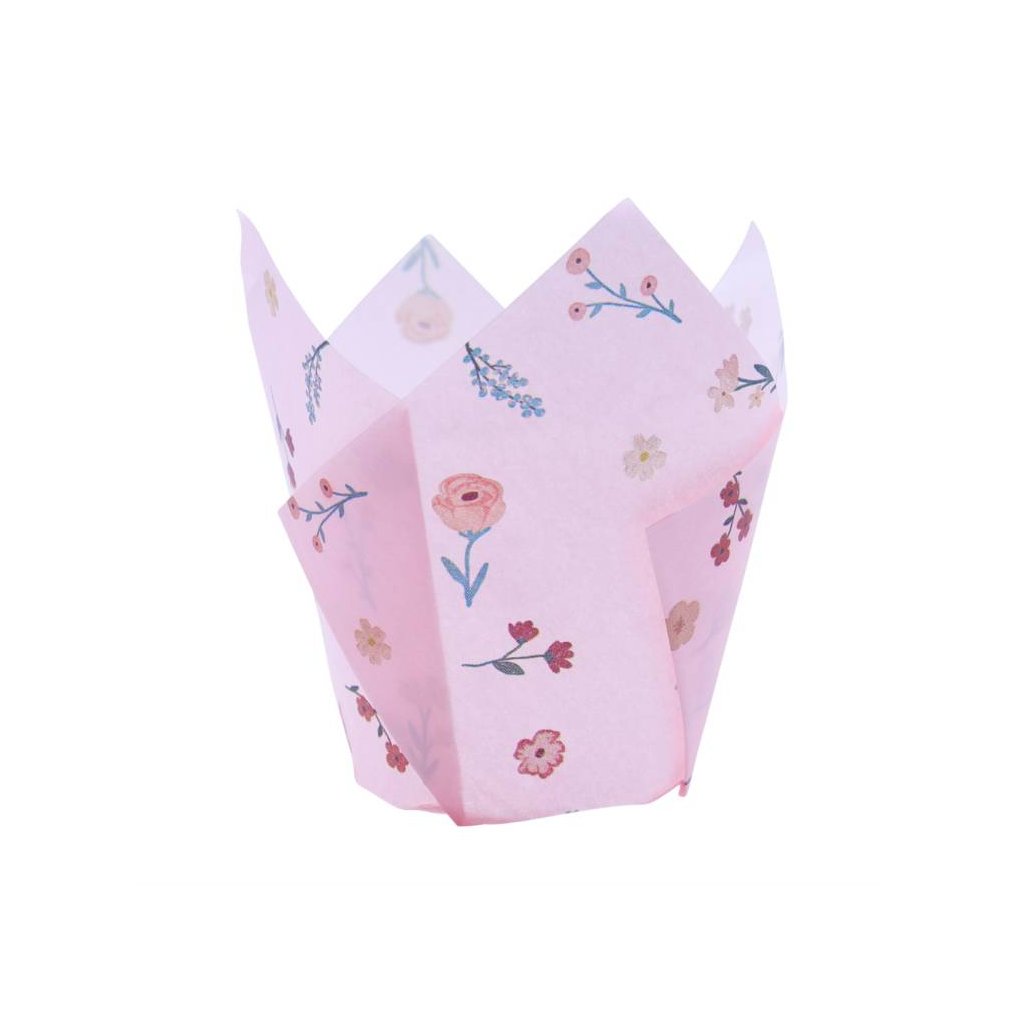 PME košíčky na muffiny Tulip růžové s květinami (24 ks) ♡