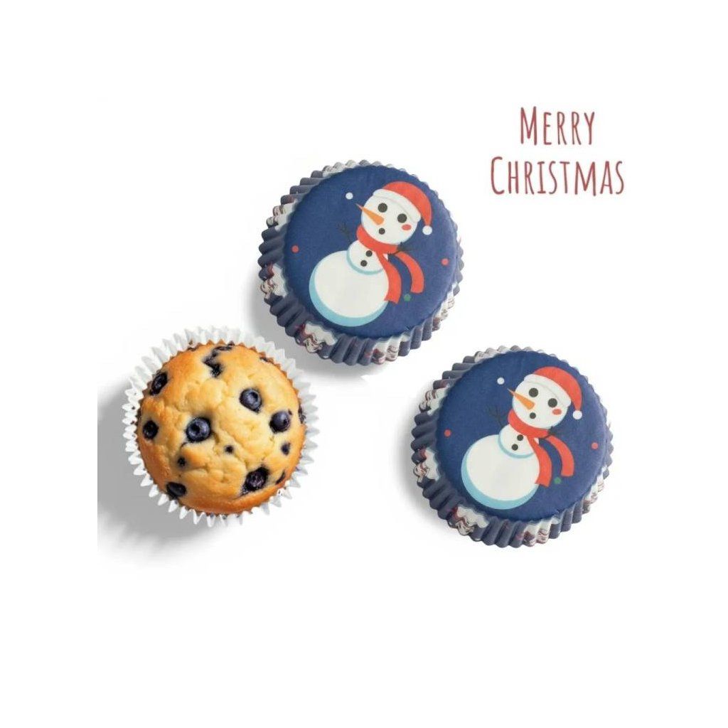 Košíčky na muffiny tmavě modré s vánočními motivy (75 ks) ▹
