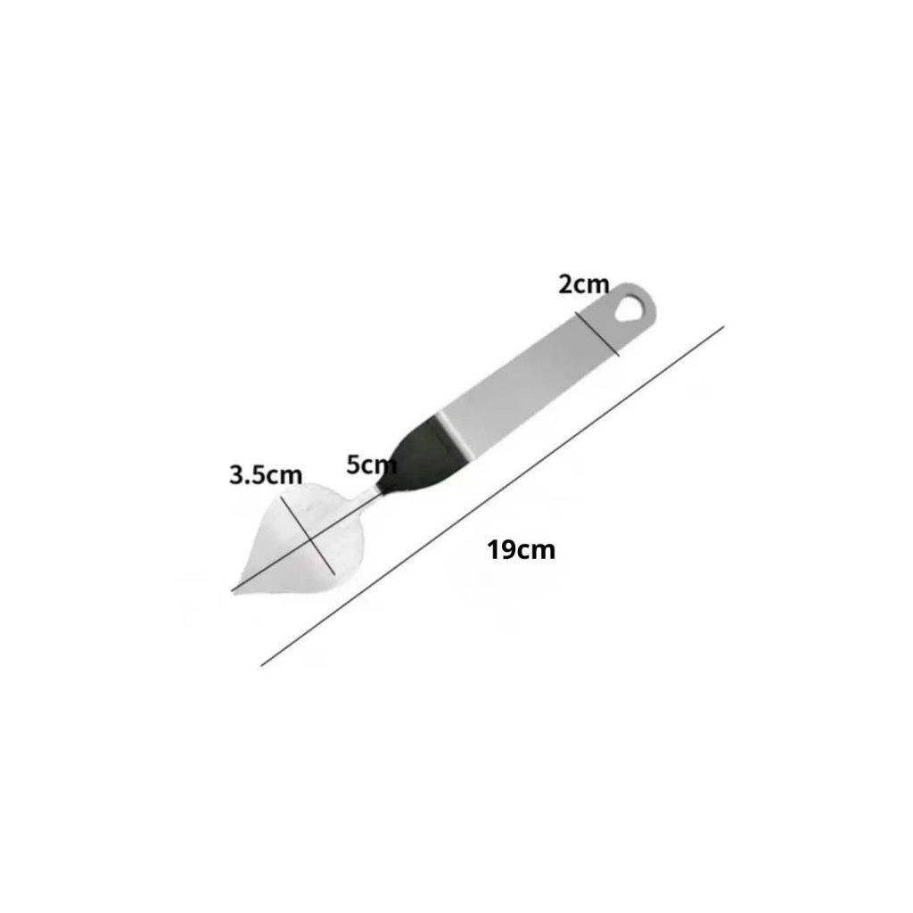 Cukrářská špachtle na výrobu čokoládových ozdob. Delková délka: 19 cm Délka čepele: 5 cm Šířka čepele: 3,5 cmDoplňkové parametry
