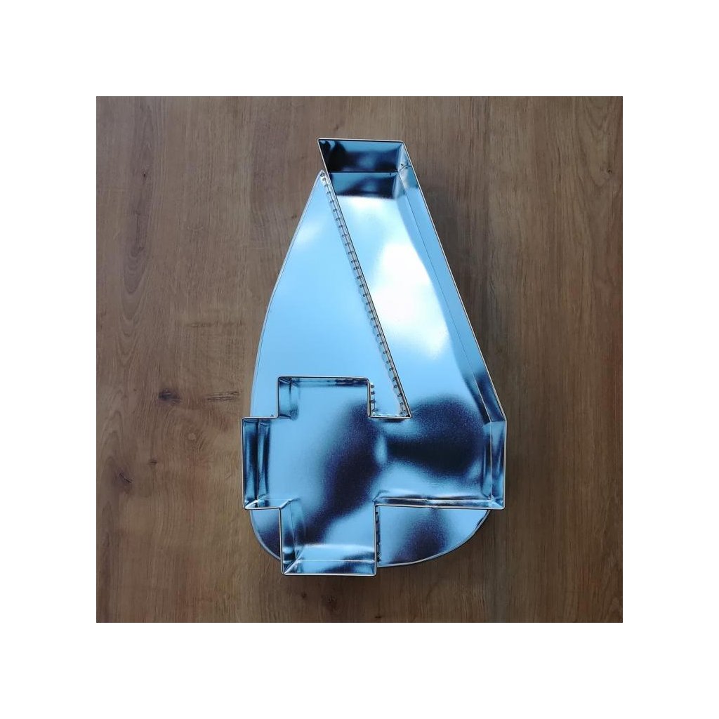 Forma se dnem. Dortová forma z pocínovaného plechu ve tvaru číslice. Výška cca 34 cm. Cena za 1 ks.