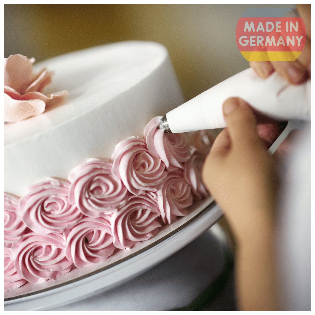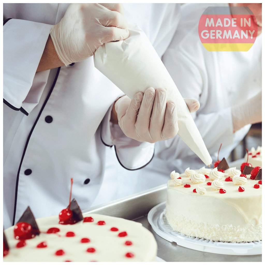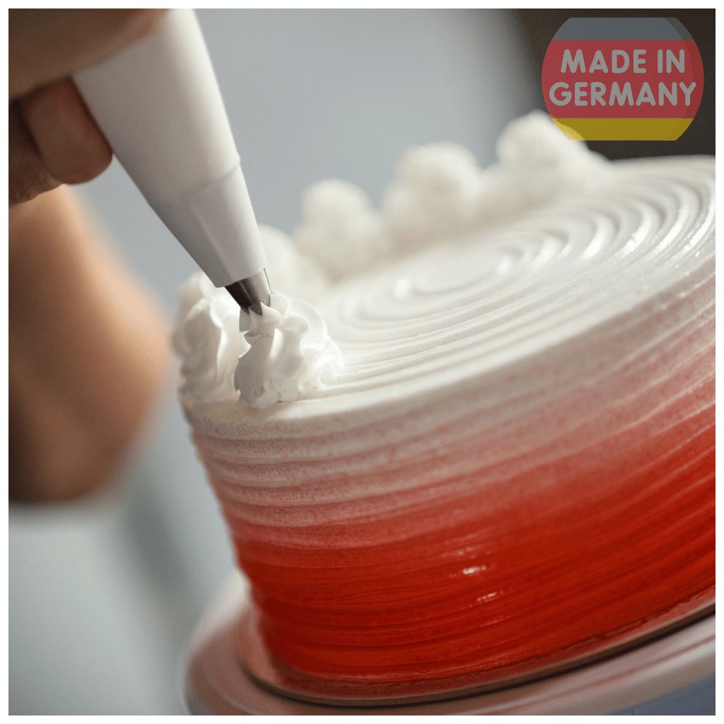 Sáček je opakovaně použitelný ✅ Má ukončovací obšitý lem ✅ Otvor pro zdobící špičku lze upravit dle libosti ✅ Má všité poutko pro snadné skladování a sušení ✅ Materiál určený pro styk s potravinou ✅ Antibakteriální ✅ Kompaktní velikost pro začátečníky ✅ Německá kvalita šití ✅ Skvělá cena ✅ Dlouhá životnost ✅