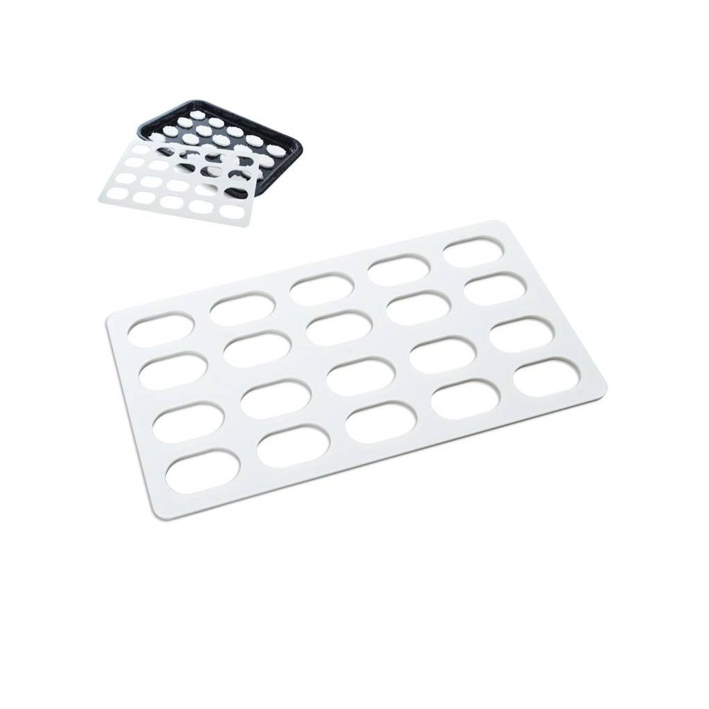 Forma na sněhové laskonky. Jednoduše položíte šablonu na pečící papír na plech, rozetřete stěrkou po šabloně sněhovou hmotu a formu odklopíte. Rozměr formy: 18 x 30 x 0,4 cm Rozměr jedné laskonky: 4,5 x 3 cmDoplňkové parametry