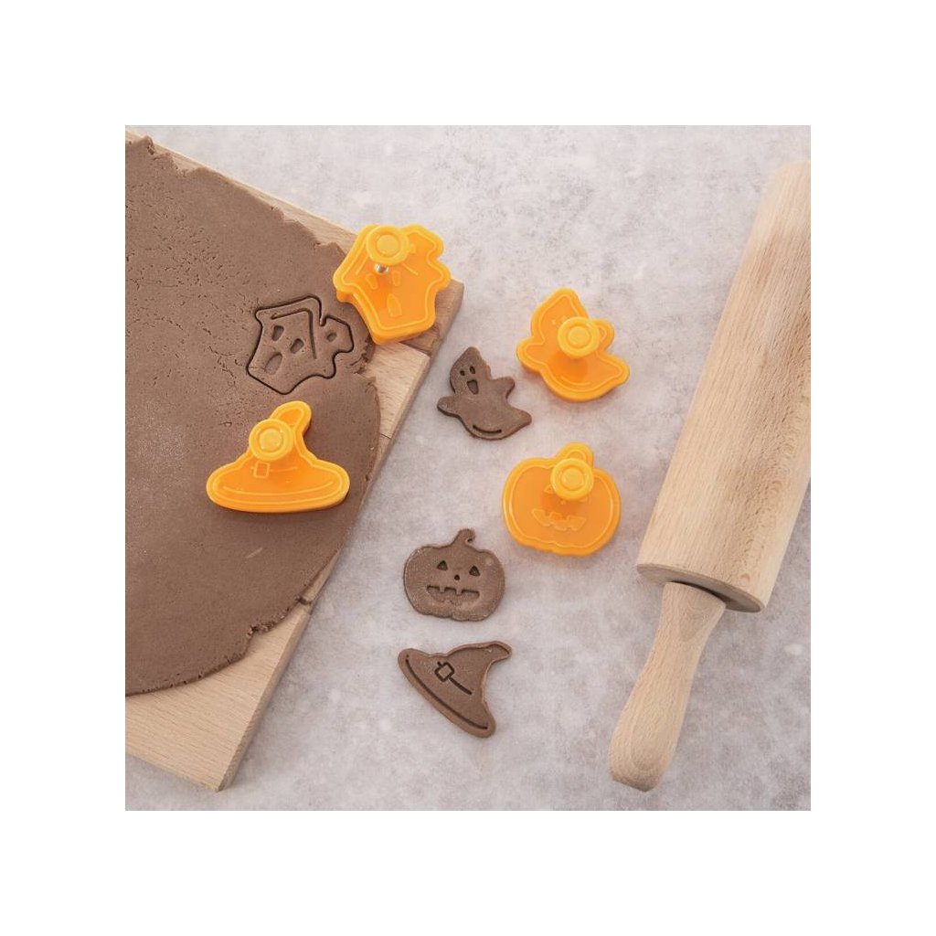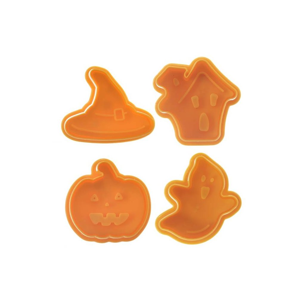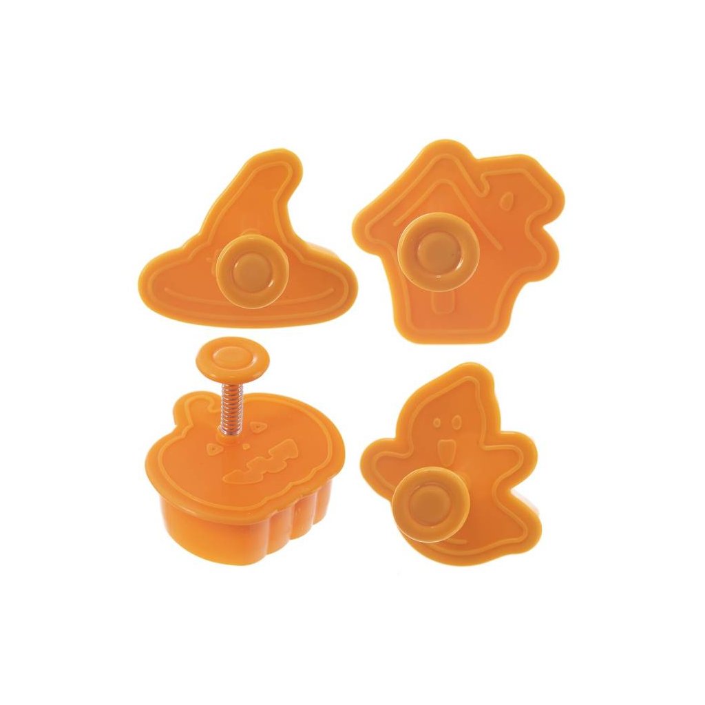 Vykrajovačka s pístem skvěle vytvoří domácí perníčky nebo sušenky. Nejdříve vykrojíte klasicky obrys, pomocí pístu pak obtisknete plastický vzor. Sada 4 halloweenských tvarů – dýně, klobouk, duch a strašidelný dům. Vhodné nejen na sušenky a perníčky, ale také na marcipánové ozdoby nebo modelovací hmotu. Materiál: plast PP, kov-ocel Rozměry: 4 - 5 cmDoplňkové parametry