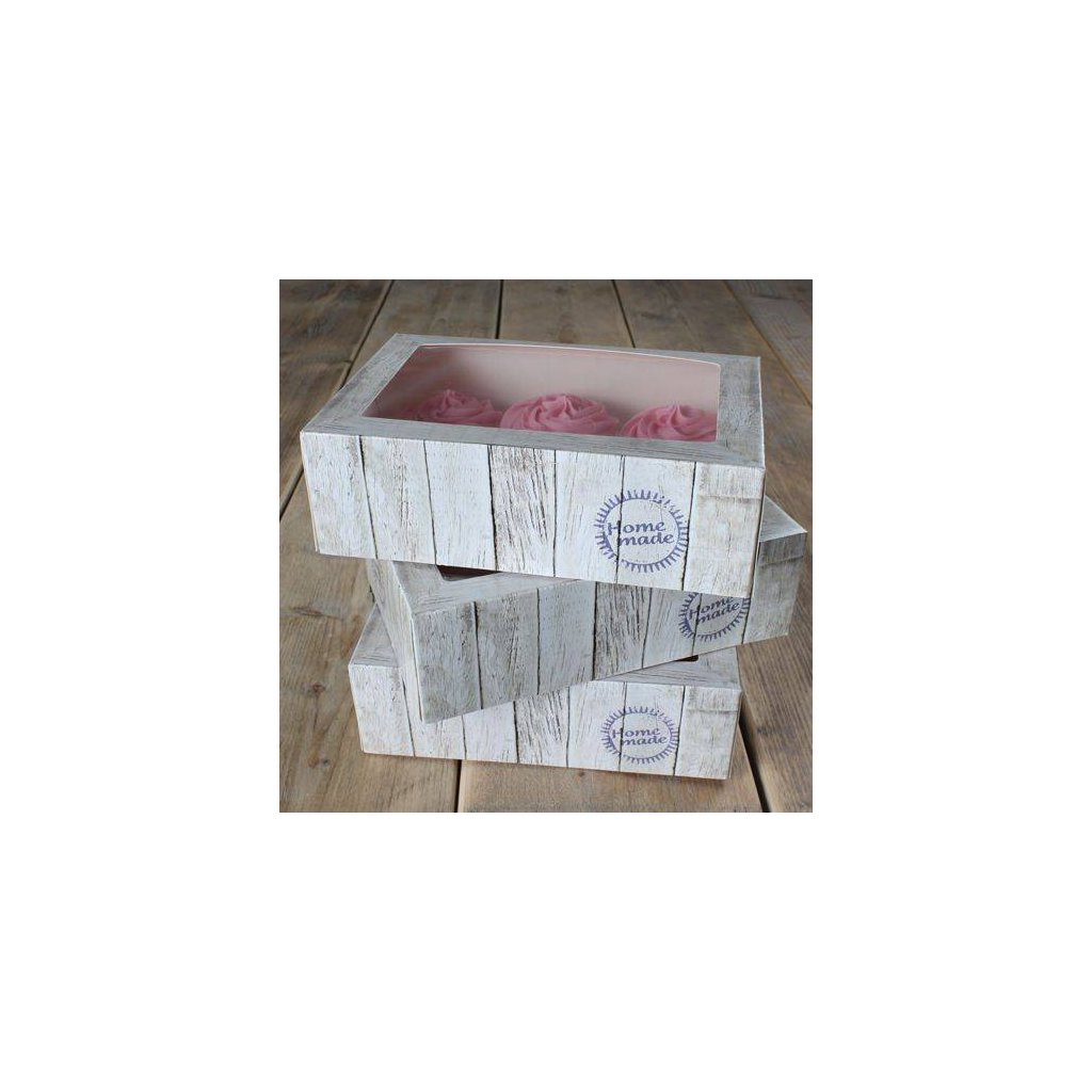 Papírová krabička průhledná na 6 cupcakes 24x16x8cm v sadě 3 krabičky - FunCakes | Cukrářské potřeby