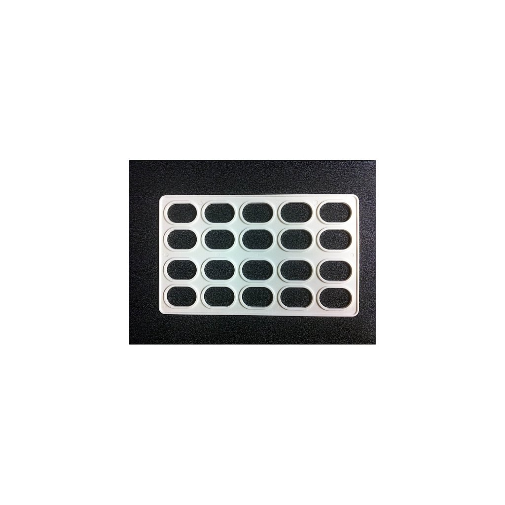 Plastová šablona na laskonky. NESLOUŽÍ NA PEČENÍ. Velikost šablony: 29,5 x 18 cm Velikost laskonky: 2,9 x 4,5 cm Počet laskonek: 20 ksDoplňkové parametry