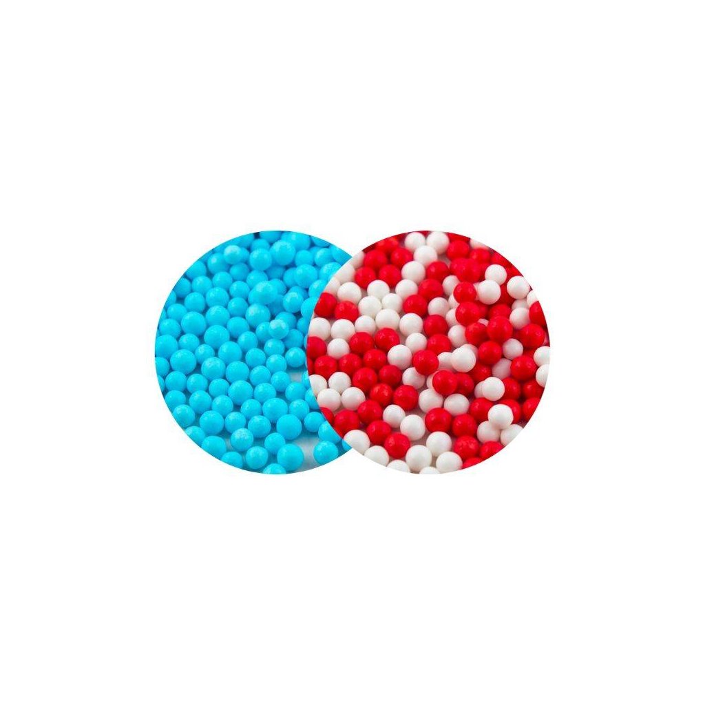 SweetArt cukrové perly nebesky modré, červené a bílé 5 mm (120 g) ♡