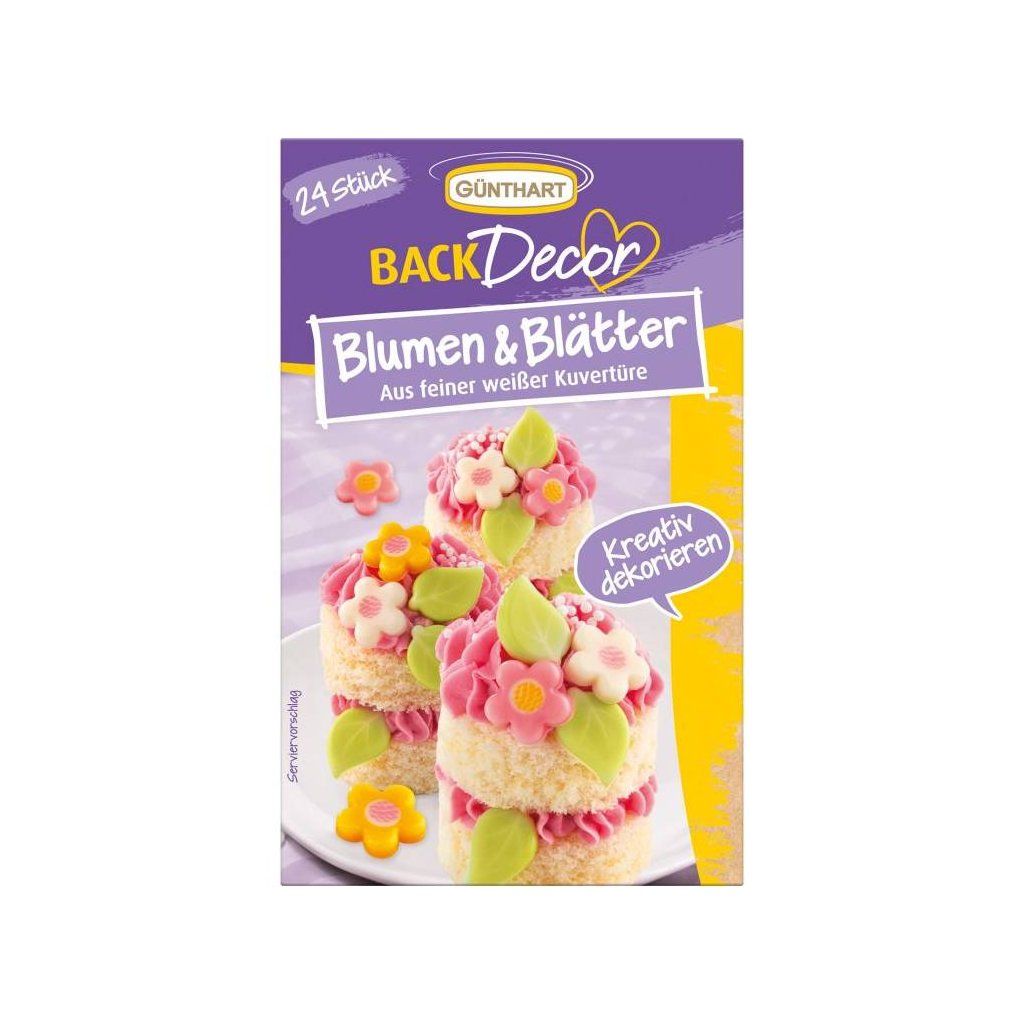 Cukrářské potřeby a suroviny pro sladké pečení.Produkt pro domácí cukráře: Květy a listy z bílé čokolády 24ks - Gunthart ,