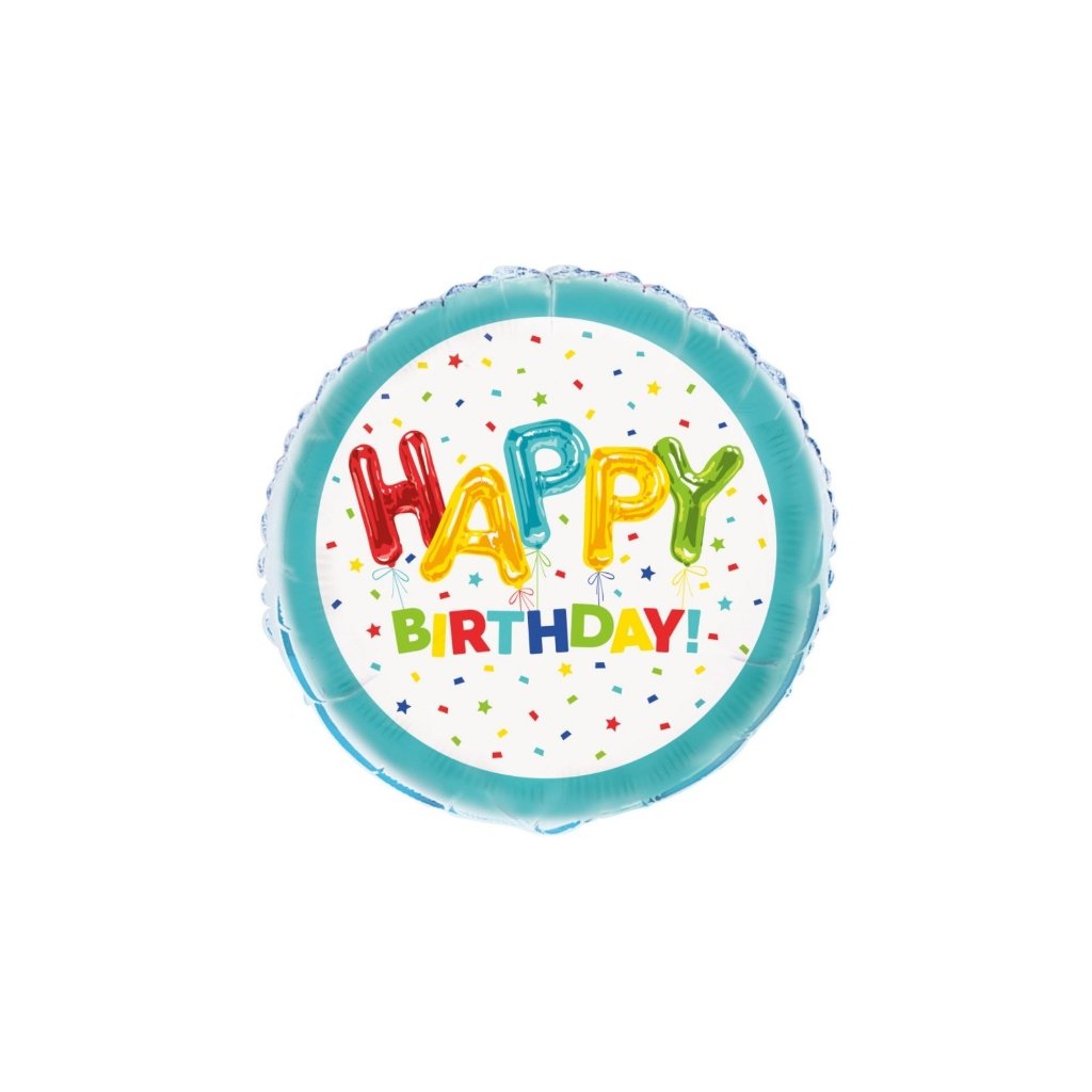 Tento kulatý fóliový balónek s nápisem „Happy Birthday“ a barevným potiskem balónků je veselým doplňkem každé narozeninové oslavy. Balónek lze nafouknout vzduchem nebo héliem – při naplnění héliem se vznáší a zůstává plně nafouknutý přibližně 5–7 dní. Pokud je nafouknutý vzduchem, nelétá, ale vydrží nafouknutý i několik měsíců. Díky samouzavíracímu ventilu se snadno používá bez nutnosti dalšího vázání. Balónky jsou baleny v obchodním obalu a skvěle ladí s dalšími produkty z kolekce Happy Birthday – balónky a konfety. Materiál: Metalická fólieRozměry před nafouknutím: 45 × 45 cmRozměry po nafouknutí: cca 35 × 35 cmObjem: cca 17 lBalení: 1 ksBaleno v obchodním obalu: AnoBalónek se samouzávěrem: AnoVhodné pro: Vzduch i héliumDoplňkové parametry