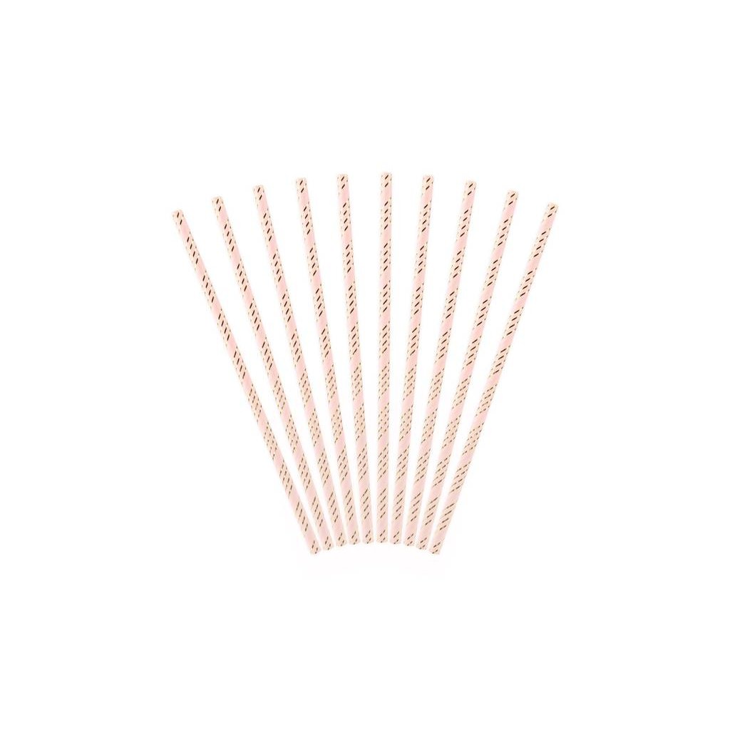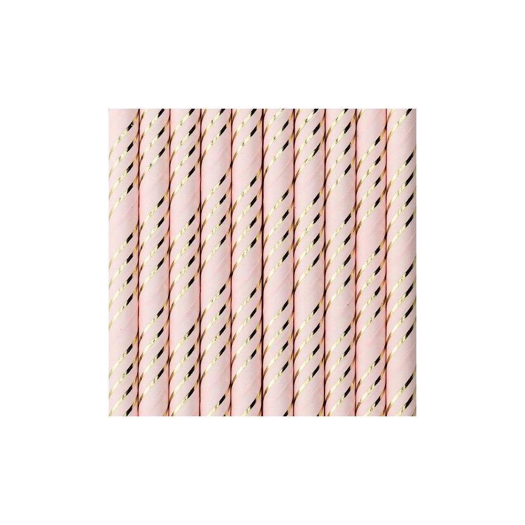Papírová brčka růžová - zlaté pruhy 10 ks /BP