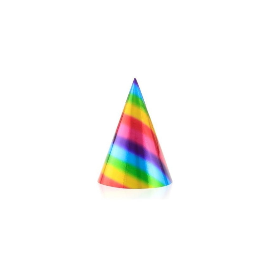 Holografické party čepičky v duhové barvě, které se hodí na narozeninovou oslavu, party nebo také silvestr. Velikost: 15, 5 cm. Balení: 6 ks.Doplňkové parametry