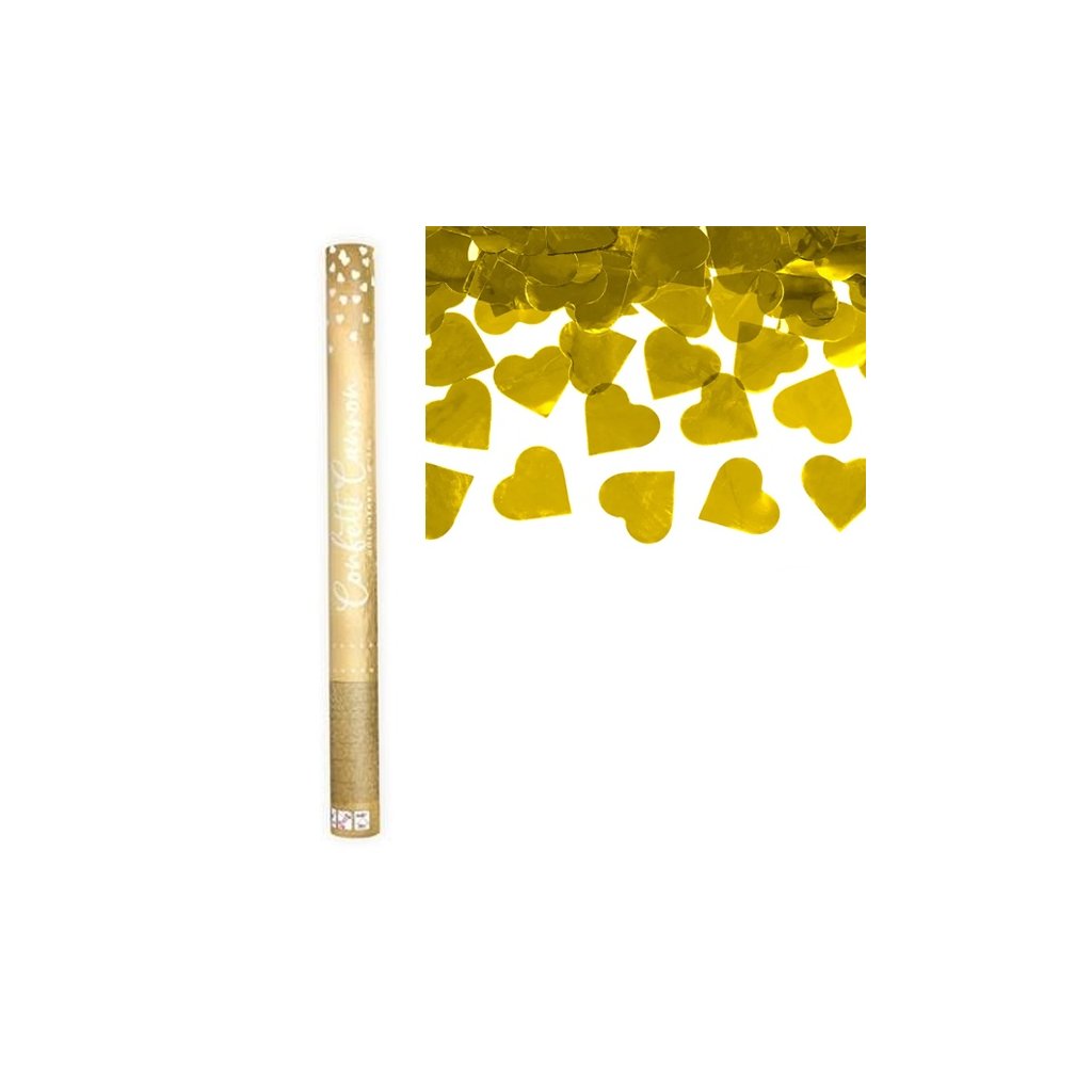 Vystřelovací konfety metalická srdíčka zlatá - 60 cm. Vystřelovací konfety, jsou skvělý prostředek k vytvoření wow efektu. Hodí se na jakoukoliv oslavu jako jsou oslavy narozenin, svatby, odhalení pohlaví miminka nebo silvestr. Tímto jednoduchým party doplňkem, dotáhnete každou oslavu k dokonalosti. Barva: metalická zlatá. Velikost: 60 cm. Balení: 1 ks. Video s návodem k použití efektem naleznete pod tímto odkazem.Doplňkové parametry