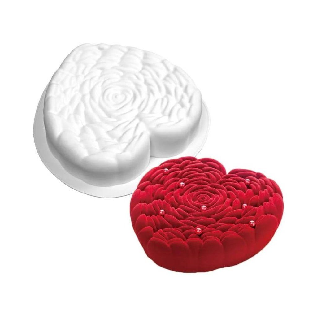 Silikonová pečicí forma ve tvaru Srdce struktura růže ▹