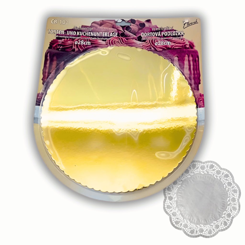 Dortová podložka 28cm ZRCADLOVÁ + 5 krajek | GOLD /CB101