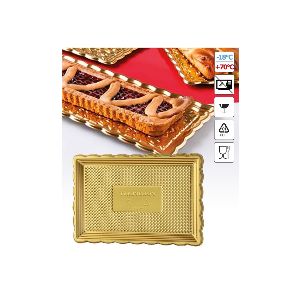 Obdélníková plastová podložka pod dort z polypropylenu, určena pro styk s potravinami.
