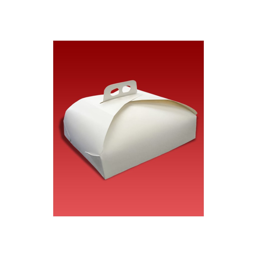 Elegantní čtvercová krabice na dorty z lesklého bílého papíru. Velmi dobře se přenáší.