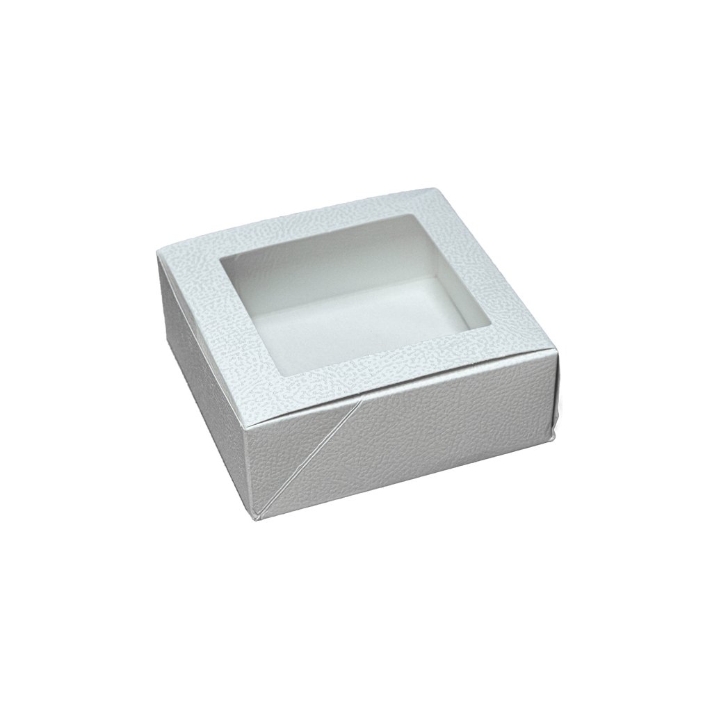 Krabice na cukroví s průhledem 160x160 v.60mm (kůže bílá) 1 ks krabička