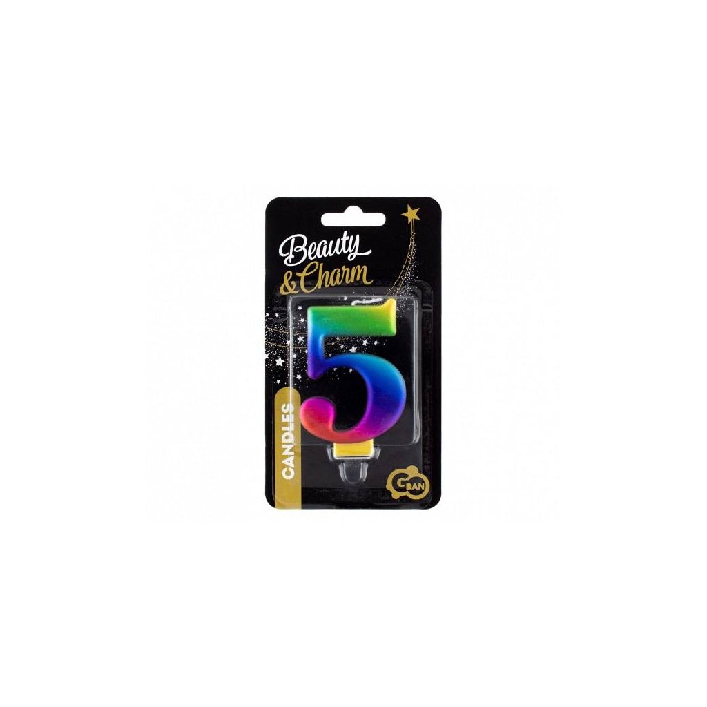 Svíčka - číslice "5" duhová 8cm 1 ks