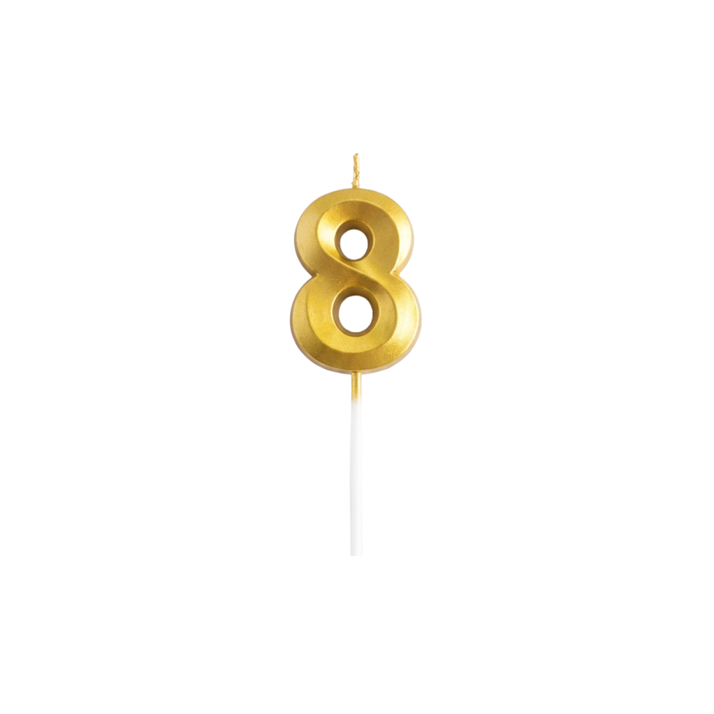 Originální narozeninová svíčka s číslicí 8 dodá vašemu dortu kouzelný vzhled. Ideální doplněk pro dětské oslavy, narozeniny i tematické párty.