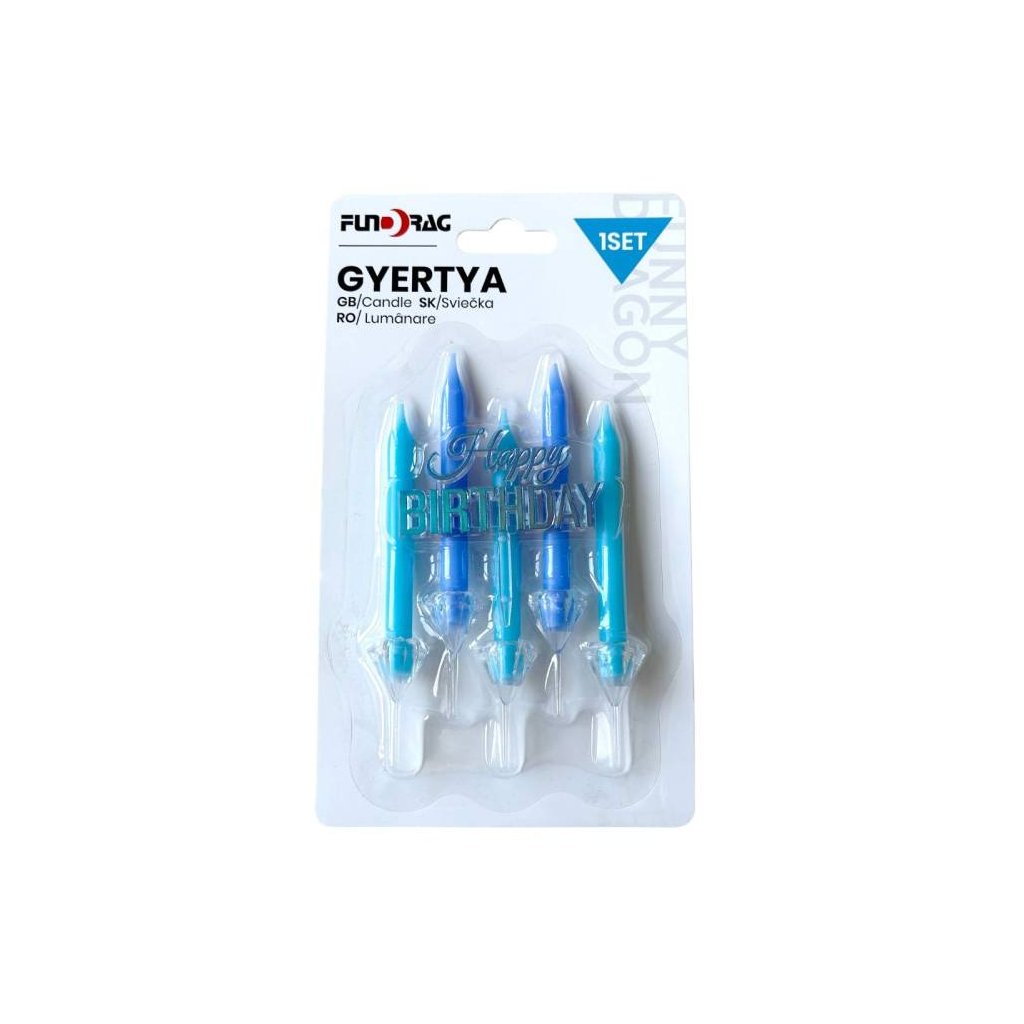 Svíčky modré se zápichem do dortu Happy Birthday (6 ks) ▹