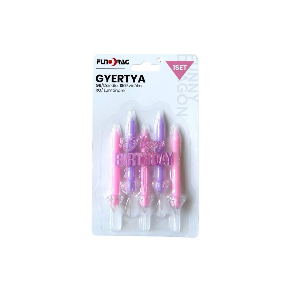 Svíčky růžové a fialové se zápichem do dortu Happy Birthday (6 ks) ▹