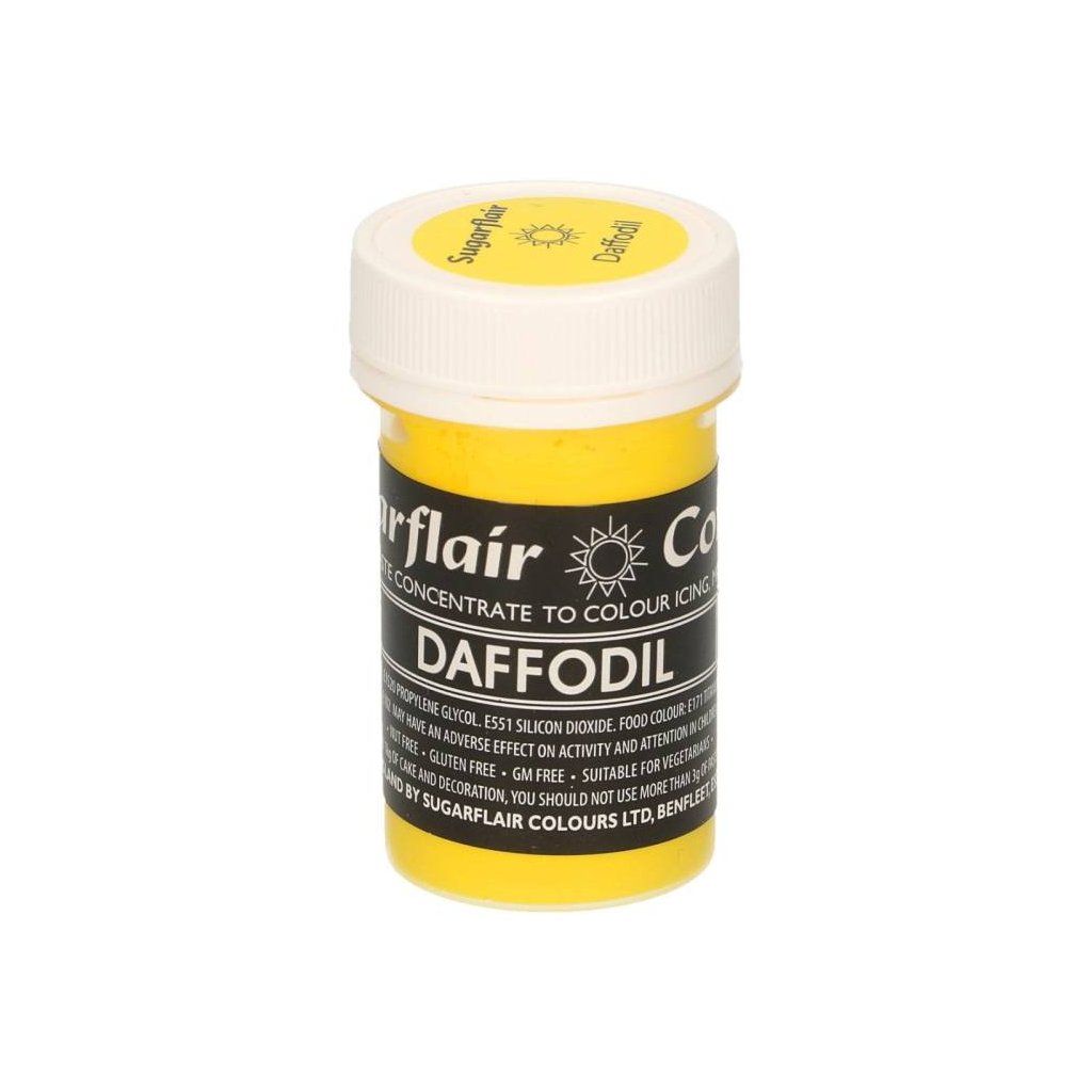 Složení, co obsahuje produkt - Pastelová gelová barva Sugarflair 25 g Daffodil pro cukrářské účely: