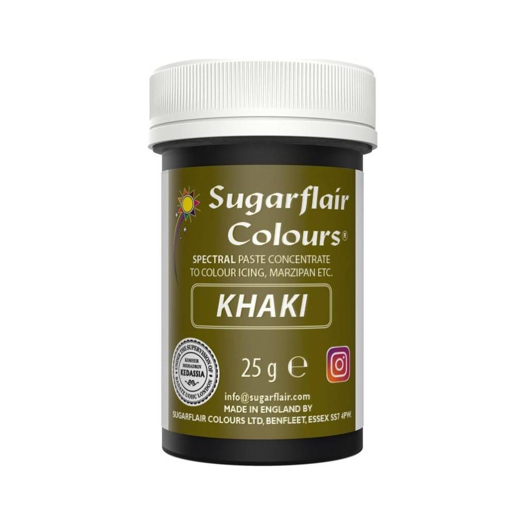 Gelová barva khaki 25g - Sugarflair | Skvělé pro Váš domácí dort