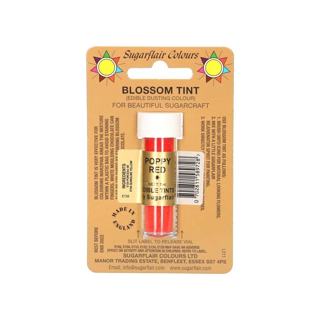 Jedlá prachová barva poppy red 7ml - Sugarflair | Skvělé pro Váš domácí dort